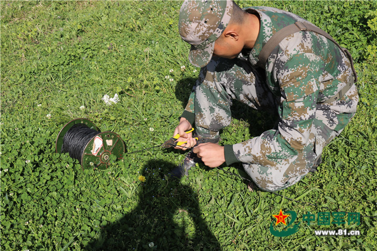 建立通信聯(lián)絡(luò),連測(cè)觀察所坐標(biāo),繪制修正量圖解表…一切工作緊張有序。 “陣地報(bào)告,陣地坐標(biāo)xx…”傳令的過程中,通信突然中斷,為保障任務(wù)的完成,通信兵分頭行動(dòng),迅速展開巡線,終在一處灌木叢中,發(fā)現(xiàn)并及時(shí)修補(bǔ)好被剪斷的線路。原來這是教員為增加訓(xùn)練難度,提高學(xué)員的臨機(jī)處突能力而設(shè)置的小科目。