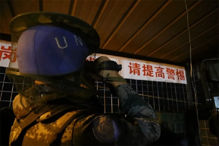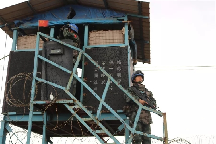 我見到過游行示威的隊(duì)伍浩浩蕩蕩地從哨位下走過,聽過“China good”的贊揚(yáng),當(dāng)然也有過被丟擲石塊的萬難場景,聽過粗魯?shù)膼赫Z挑釁,但是中國軍人的形象依然像哨位上的那面紅旗一樣屹立不動,迎風(fēng)飄揚(yáng)。