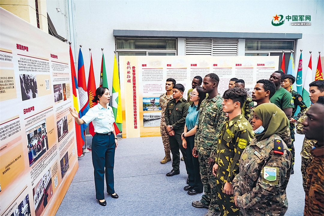 圖為外軍學員參觀《為了民族解放與世界和平——歷史回響與時代擔當》主題展覽。張程翔 攝
