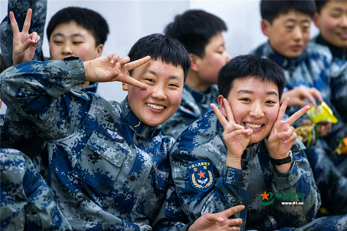 戰(zhàn)士們笑靨如花,如果不是穿上軍裝,她們真的還是個(gè)孩子。