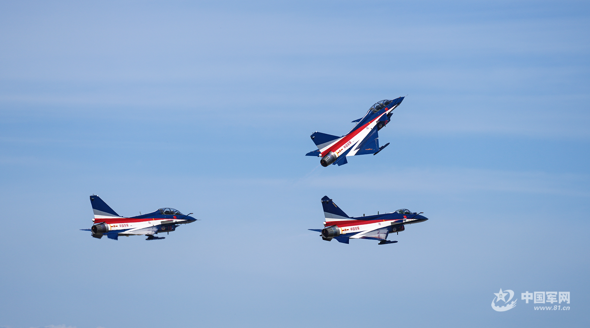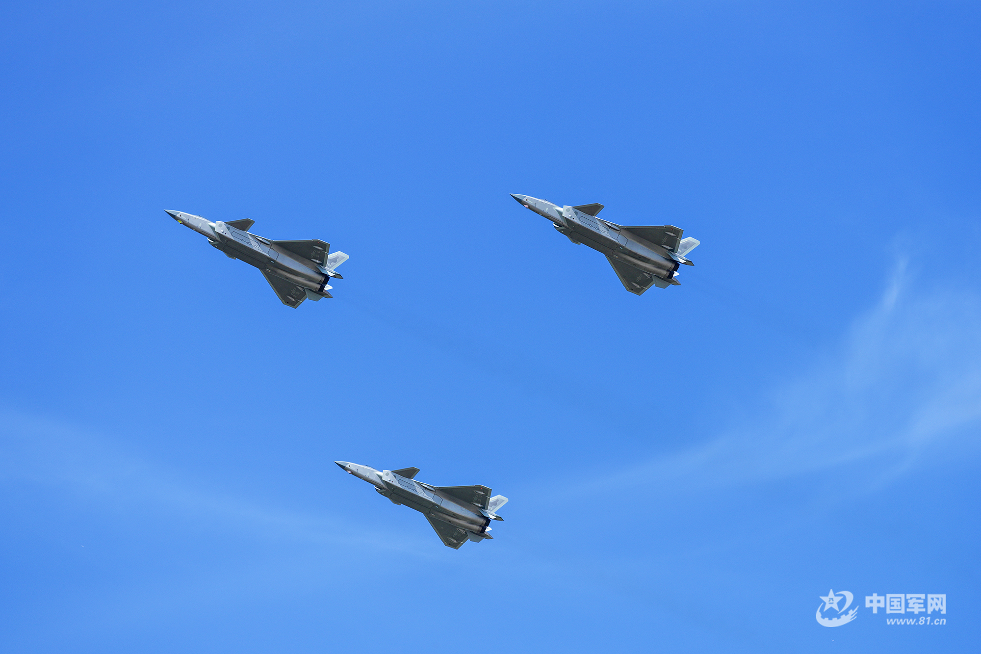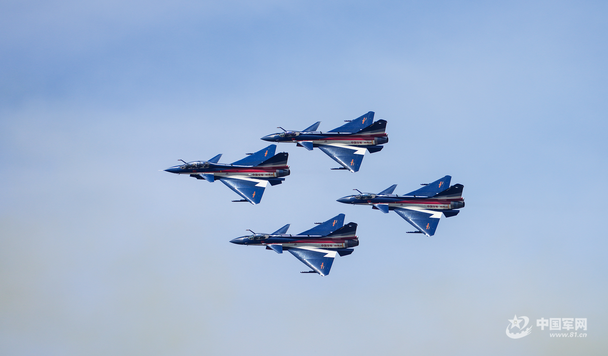殲-20四機編隊藍天勁舞