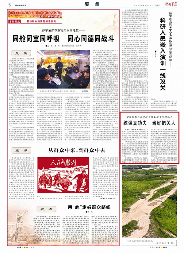 解放軍報訊 胡曉敏、孫安全報道:“反映轉(zhuǎn)廠后試驗資源緊張這個問題后,軍代表主動協(xié)調(diào)有關(guān)單位,幫我們解了燃眉之急?!比涨埃硢挝回?fù)責(zé)人談及空軍某軍代室軍代表的高效服務(wù)時,對他們的務(wù)實作風(fēng)贊不絕口。