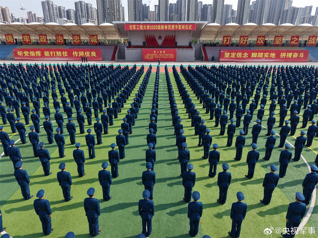 近日,空軍工程大學(xué)中心校區(qū)大操場(chǎng)上,2025級(jí)新學(xué)員授予軍銜儀式莊嚴(yán)舉行。經(jīng)過兩個(gè)多月的淬火磨礪,順利完成新訓(xùn)任務(wù)的學(xué)員們佩戴上了象征責(zé)任與榮光的“一道杠”肩章,正式開啟軍旅生涯新階段。為新戰(zhàn)友點(diǎn)贊加油!