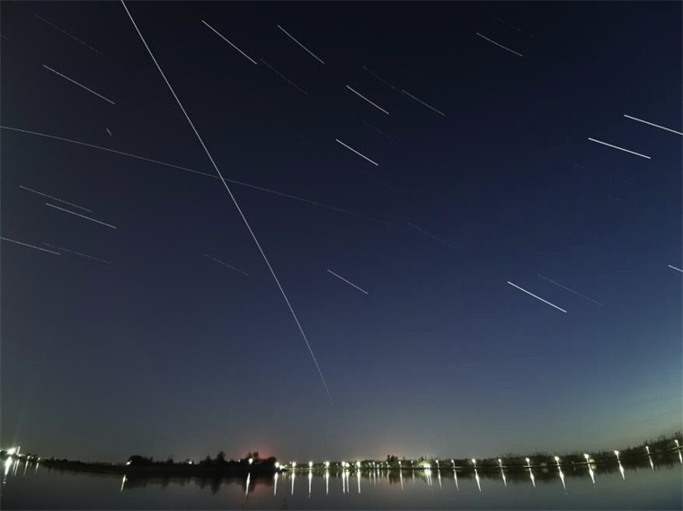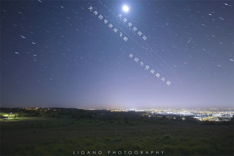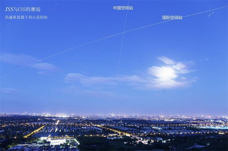 北京西山國家森林公園上空,中國空間站邂逅國際空間站。(網(wǎng)友浩淼之星耿夏 攝)
