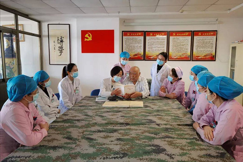 孟繼高住院期間為醫(yī)護(hù)人員講述紅色戰(zhàn)斗故事。單一猛 攝