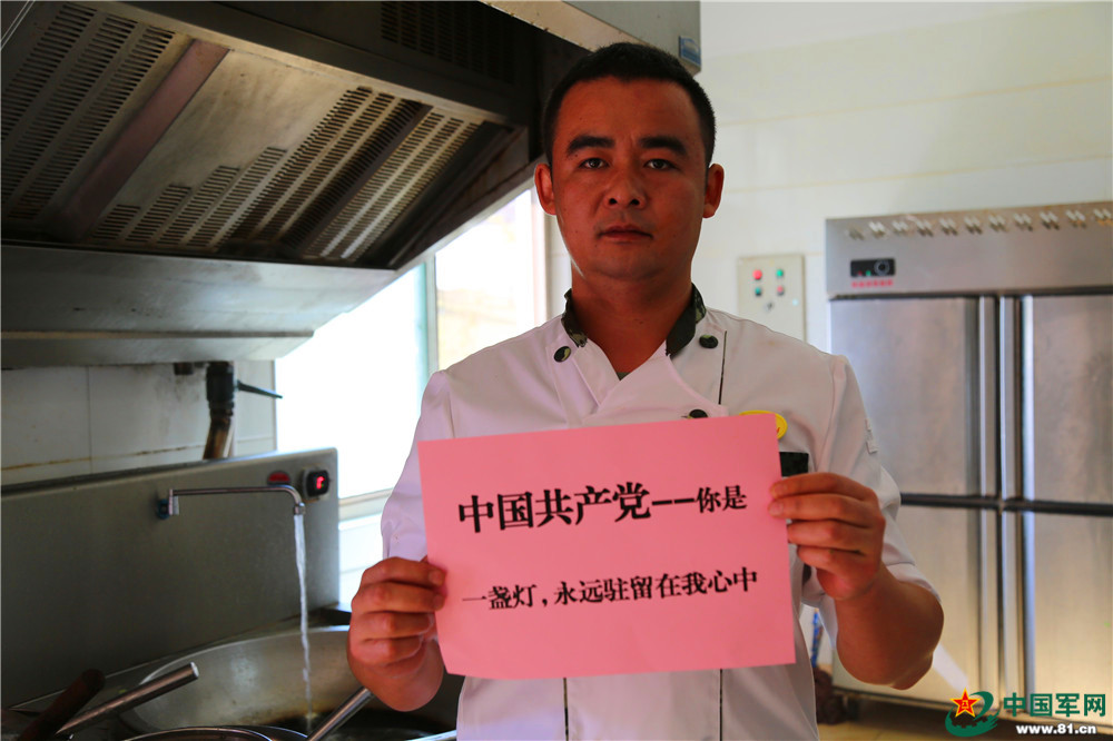我叫趙文軍,入伍13年一直默默奉獻(xiàn)在部隊炊事崗位上,作為一名老兵、一名老黨員,今天我要對黨說:你是一盞燈,永遠(yuǎn)駐留在我心中。