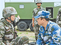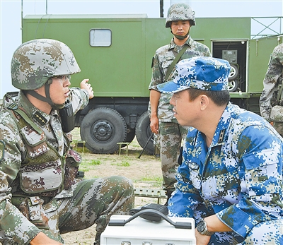 該旅技術(shù)骨干向海軍部隊(duì)專(zhuān)家演示創(chuàng)新成果操作流程。張武男攝