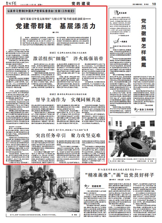 陸軍某旅引導(dǎo)黨支部用好“左膀右臂”提升聯(lián)建聯(lián)創(chuàng)質(zhì)效——