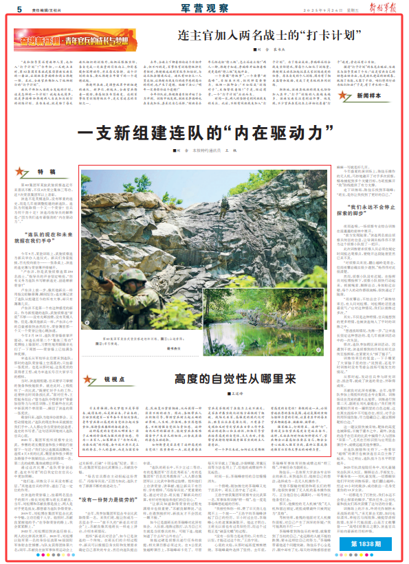 通過這次比賽,“連隊榮譽創(chuàng)造者、連史書寫者”的自我定位在官兵心中更加明晰。