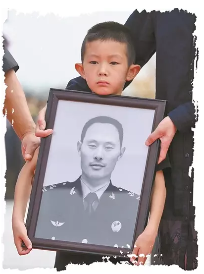 在烈士楊樹朋骨灰安放儀式上,不到7歲的楊一鳴手捧父親遺像走在隊(duì)伍最前面。