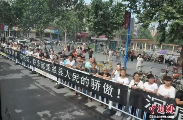 河南溫縣近萬名群眾自發(fā)走上街頭,送別申亮亮。