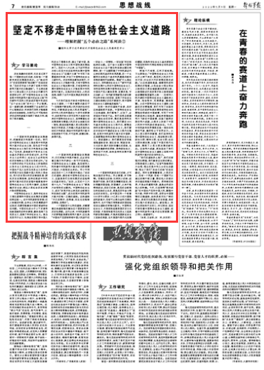 樹高千尺有根,江河萬里有源。習主席指出:“中國特色社會主義不是從天上掉下來的,是黨和人民歷盡千辛萬苦、付出巨大代價取得的根本成就?!睆倪@條道路奠基、鋪砌到形成和拓展的歷程看,從浴血奮斗闖出革命之路到自力更生鋪就建設探索之路,從敢闖敢試開啟改革開放之路到砥礪奮進擘畫強國富民之路……黨領導人民開辟的中國特色社會主義道路來之不易,飽含艱辛、充滿勇毅、凝結智慧。從在中國特色社會主義道路上鑄就的歷史輝煌看,我們書寫了創(chuàng)造世所罕見的經濟快速發(fā)展奇跡和社會長期穩(wěn)定奇跡的中國故事,書寫了中華民族迎來從站起來、富起來到強起來偉大飛躍的中國故事,創(chuàng)造了彪炳史冊的偉大成就,從根本上改變了中國人民和中華民族的前途命運。今天,中華民族向世界展現(xiàn)的是一派欣欣向榮的氣象,巍然屹立于世界東方。從為人類文明作貢獻看,我們堅持和發(fā)展中國特色社會主義,推動物質文明、政治文明、精神文明、社會文明、生態(tài)文明協(xié)調發(fā)展,創(chuàng)造了中國式現(xiàn)代化道路,展現(xiàn)了人類文明發(fā)展的新形態(tài)。這些偉大成就,更加堅定了我們在中國特色社會主義道路上實現(xiàn)中華民族偉大復興的自信和定力。
