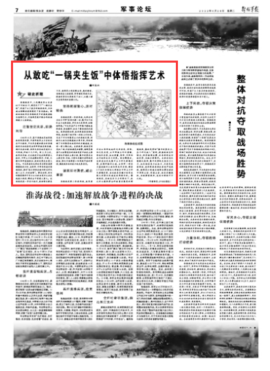 淮海戰(zhàn)役中,人民解放軍以自身60萬(wàn)對(duì)敵80萬(wàn),硬是吃下了“一鍋夾生飯”,創(chuàng)造了以少勝多的經(jīng)典戰(zhàn)例,為加速全國(guó)解放進(jìn)程奠定了堅(jiān)實(shí)基礎(chǔ)。深刻體悟我軍在淮海戰(zhàn)役中的高超謀略與指揮藝術(shù),對(duì)指揮員提升聯(lián)合作戰(zhàn)指揮能力大有裨益。