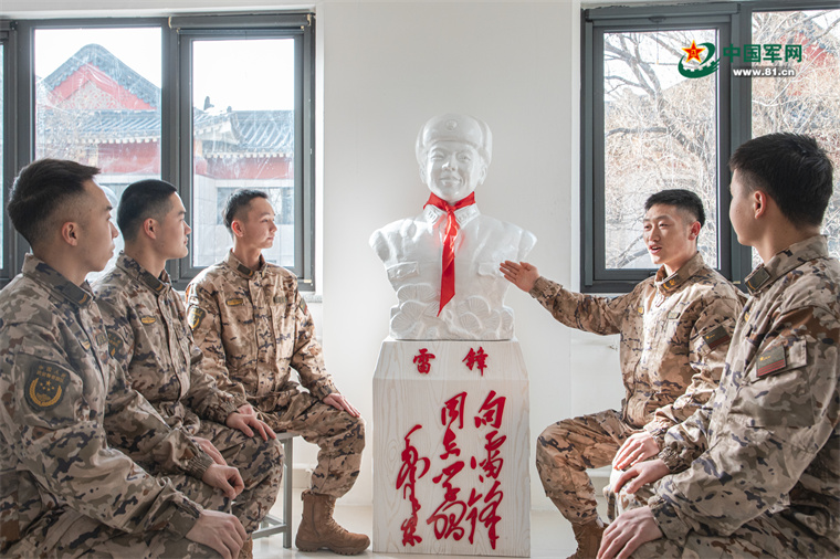“三互”小組成員在雷鋒同志像前展開討論。張雨行 攝