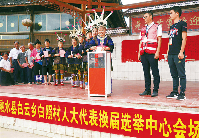 選舉人大代表,是人民代表大會(huì)制度的基礎(chǔ),是人民當(dāng)家作主的重要體現(xiàn)。圖為2021年7月22日,廣西柳州市融水苗族自治縣白云鄉(xiāng)群眾進(jìn)行縣、鄉(xiāng)兩級(jí)人大代表換屆選舉?!∏笫菆D片 龍濤/攝