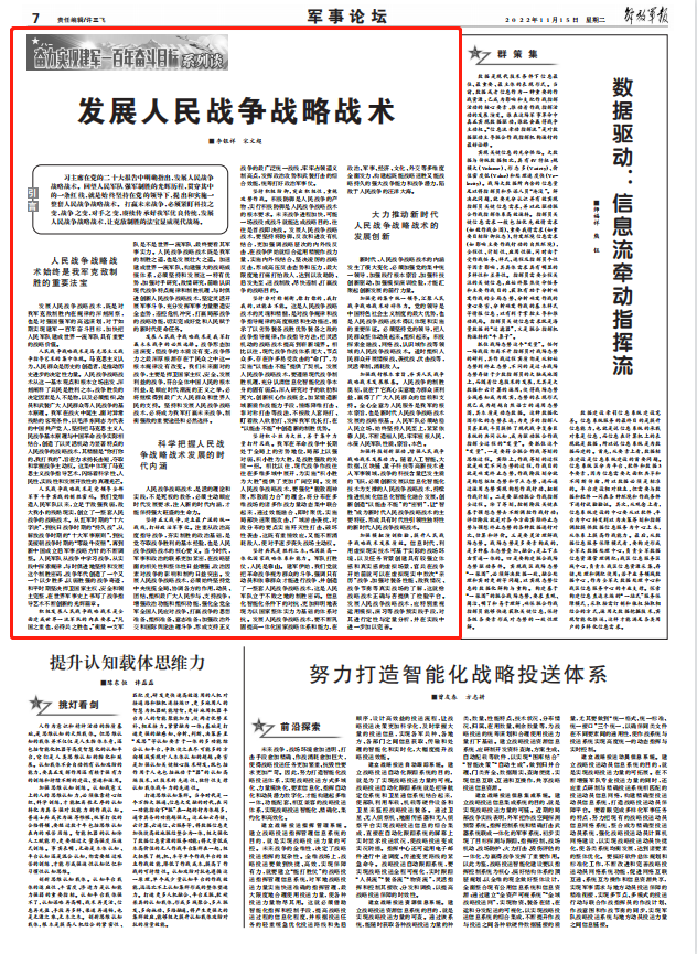 大力推動新時代人民戰(zhàn)爭戰(zhàn)略戰(zhàn)術(shù)的發(fā)展創(chuàng)新