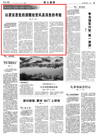 準備經(jīng)受風高浪急甚至驚濤駭浪的重大考驗,還必須進行具有許多新的歷史特點的偉大斗爭,任何貪圖享受、消極懈怠、回避矛盾的思想和行為都是要不得的。風險挑戰(zhàn)面前,視而不見不行,躲避退讓不行,畏首畏尾更不行。“凡國之重也,必待兵之勝也?!睂娙藖碚f,面對國際戰(zhàn)略格局的重大調(diào)整,面對國家安全環(huán)境的深刻變化,面對強國強軍的時代要求,我們必須始終保持居安思危的戰(zhàn)略清醒,充分發(fā)揚斗爭精神,鼓足敢斗的精氣神,拿出善斗的制勝策,打好巧斗的組合拳,練好真斗的硬本領,以箭在弦上的高度戒備狀態(tài)全時待戰(zhàn)、隨時能戰(zhàn),確保黨和人民需要的時候拉得出、沖得上、打得贏, 堅決做到不負重托、不辱使命。