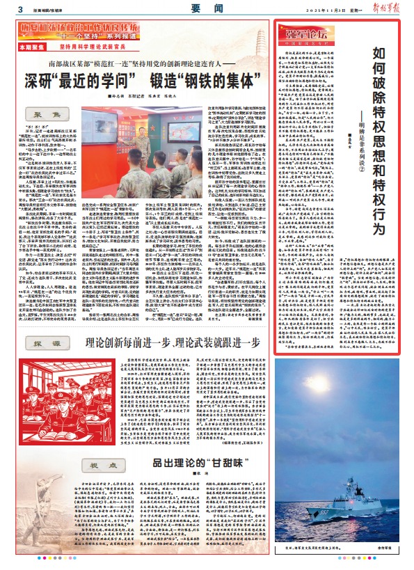 鄧小平同志曾深刻指出:“為什么過(guò)去很困難的局面我們都能度過(guò)?根本的問(wèn)題是我們的干部、黨員同人民群眾一塊苦?!笔裁唇小耙粔K苦”?“一塊苦”就是干群一致、官民平等、同甘共苦,就是黨員干部沒(méi)有特權(quán)思想和特權(quán)行為,跟人民群眾同心協(xié)力創(chuàng)造美好生活,跟廣大官兵攜手齊心錘煉打贏能力。尤其要看到,今天,部隊(duì)的物質(zhì)條件是好了,但官兵的民主意識(shí)更強(qiáng),練兵備戰(zhàn)的任務(wù)更重,更加需要黨員干部堅(jiān)決破除特權(quán)思想和特權(quán)行為,以“一塊苦”的精神凝聚團(tuán)結(jié)之力、練好勝戰(zhàn)之功、打贏攻堅(jiān)之戰(zhàn)。