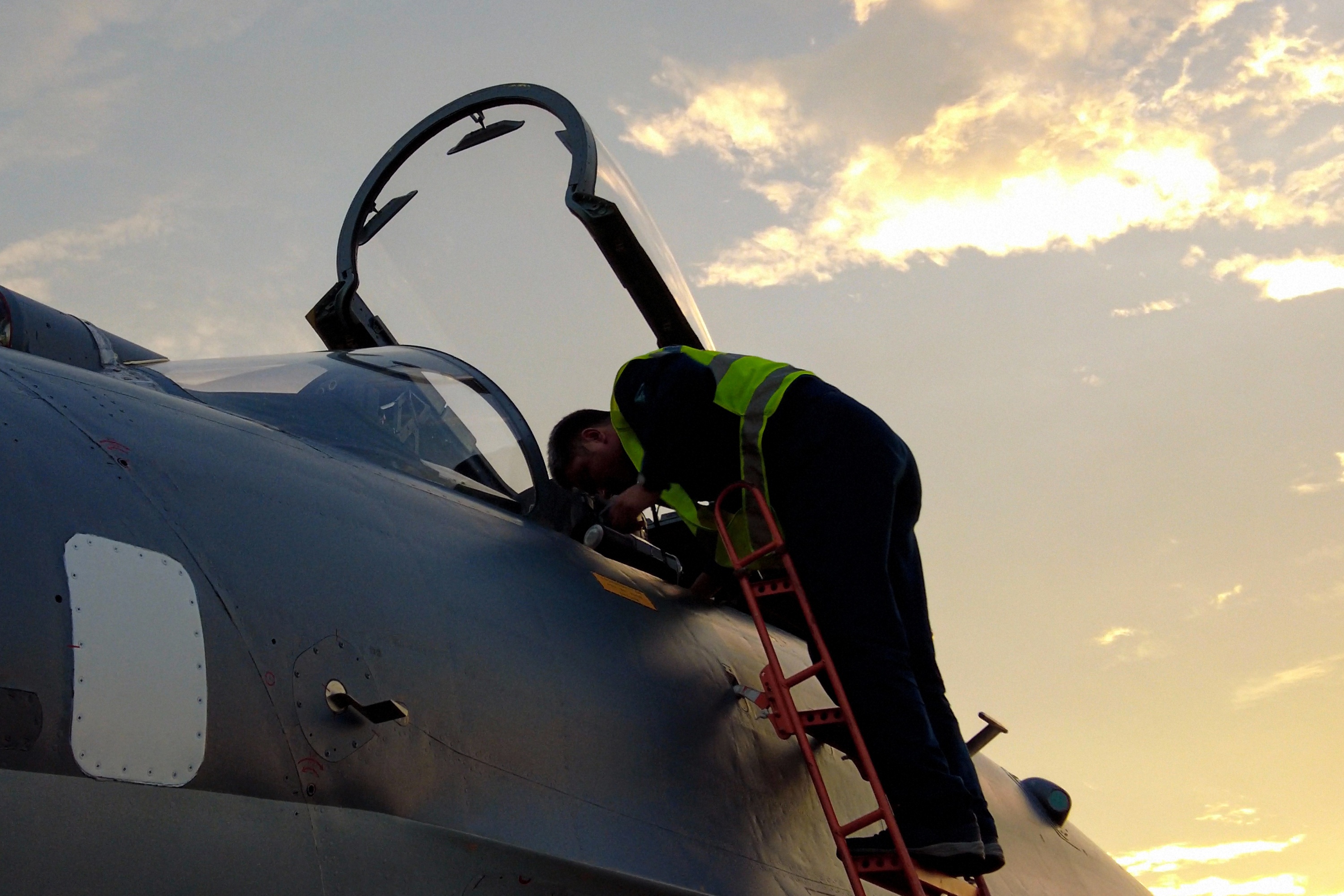 余暉似金,戰(zhàn)機平穩(wěn)滑行