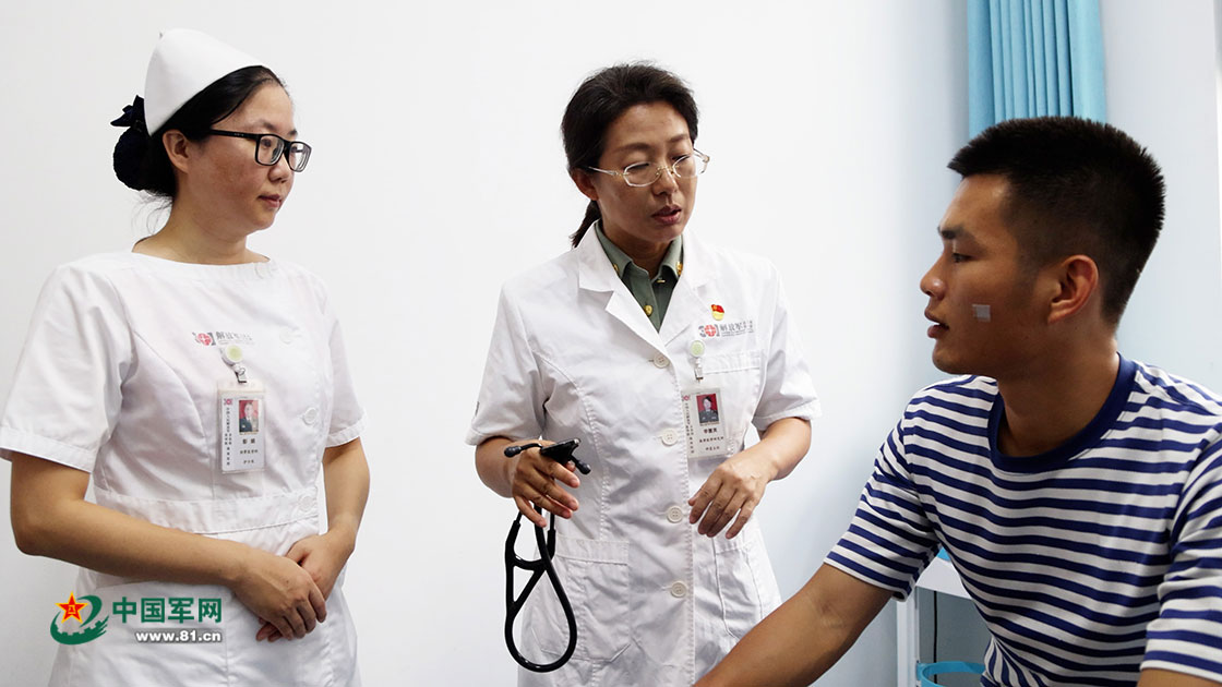 原來(lái)一名戰(zhàn)士訓(xùn)練后突然倒地,體溫高達(dá)42℃,初步判斷為熱射病。了解情況后,李慧靈立刻指揮脫掉其衣物、身體浸水進(jìn)行物理降溫,撥打120的同時(shí),提醒時(shí)刻關(guān)注病人耳溫核心溫度。戰(zhàn)士被連盆抬上救護(hù)車(chē),送到醫(yī)院繼續(xù)救治,李慧靈全程跟進(jìn)會(huì)診,得益于及時(shí)的診斷和救治,這名戰(zhàn)友3天后便完全康復(fù),重返戰(zhàn)位。