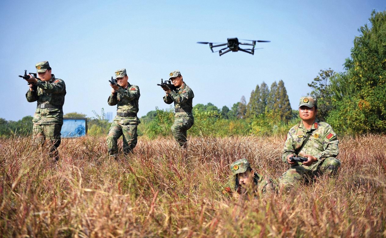 安徽省合肥市蜀山區(qū)民兵無人機(jī)分隊組織民兵進(jìn)行戰(zhàn)術(shù)訓(xùn)練。(攝影/張子博)