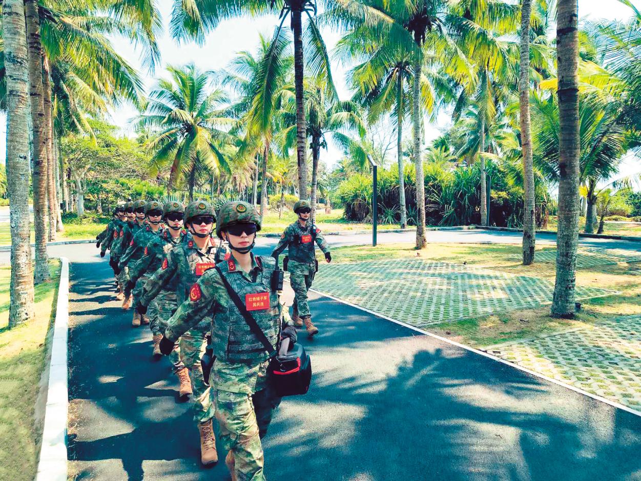 “向前進,向前進,戰(zhàn)士的責任重,婦女的冤仇深。古有花木蘭替父去從軍,今有娘子軍扛槍為人民……”循著歌聲望去,一支巡邏在萬泉河畔的迷彩隊伍精神飽滿、步履鏗鏘,排頭兵高舉著的嶄新連旗在晨風中獵獵作響——她們就是海南省瓊海市紅色娘子軍民兵連的姑娘們。這支隊伍自接過紅色娘子軍英雄連隊的旗幟后,隊伍數次調整而不散,人員幾經輪換色不變,始終自覺賡續(xù)傳統(tǒng)鑄忠誠、牢記使命勇擔當、踐行宗旨作表率,用如火的青春續(xù)寫著“向前進、向前進”的壯美樂章。