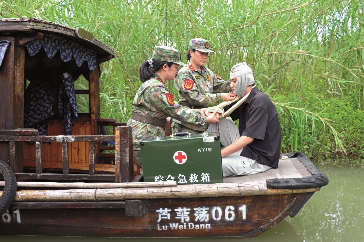 抗日戰(zhàn)爭(zhēng)時(shí)期,沙家浜人民群眾利用“水網(wǎng)密布、河湖交錯(cuò)”的地理特點(diǎn),用船槳為新四軍傷病員劃出一條“生命通道”。近年來(lái),該民兵連在英雄戰(zhàn)斗過(guò)的蘆葦蕩中積極開展“水陸兩棲”訓(xùn)練,從難從嚴(yán)抓實(shí)醫(yī)療救護(hù)、信息通信、衛(wèi)勤保障等聯(lián)演聯(lián)訓(xùn)活動(dòng),全面提升支援保障打贏能力。她們針對(duì)水上救援實(shí)戰(zhàn)要求,利用當(dāng)?shù)鼐仍?duì)技術(shù)裝備優(yōu)勢(shì)開展訓(xùn)練,在自然水域設(shè)置激流回旋、水上搜救等險(xiǎn)難課目,模擬復(fù)雜水流環(huán)境錘煉民兵舟艇操作、救援定位等技能;她們結(jié)合季節(jié)性特點(diǎn)開展溺水急救、冰面救援等課目特訓(xùn),會(huì)同地方有關(guān)應(yīng)急力量開展洪澇災(zāi)害中人員轉(zhuǎn)移與物資運(yùn)送實(shí)訓(xùn)實(shí)練,打造形成了傳統(tǒng)技能與新質(zhì)力量相結(jié)合、基礎(chǔ)訓(xùn)練與實(shí)戰(zhàn)演練相結(jié)合、常態(tài)備勤與專項(xiàng)任務(wù)相結(jié)合的“三結(jié)合”訓(xùn)練模式。