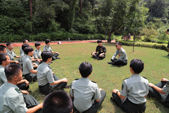 杜富國(guó)給戰(zhàn)友們講述排雷故事。(魯倫 攝)