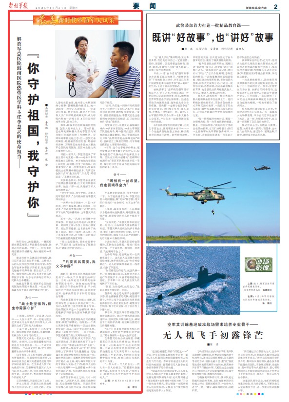 “你守護祖國,我守護你。這是人民軍醫(yī)的職責?!碑敱憻捔艚o李慧靈深刻體會。