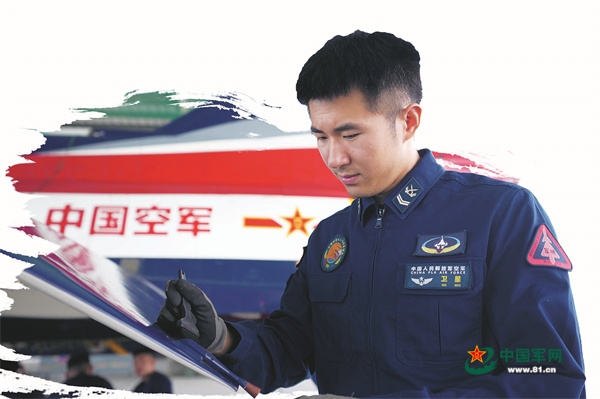 他叫衛(wèi)星,是空軍八一飛行表演隊(duì)的一名軍械員。在今年閱兵任務(wù)中,他擔(dān)負(fù)的一項(xiàng)重要職責(zé)就是保障表演機(jī)能夠拉出漂亮的彩煙。
