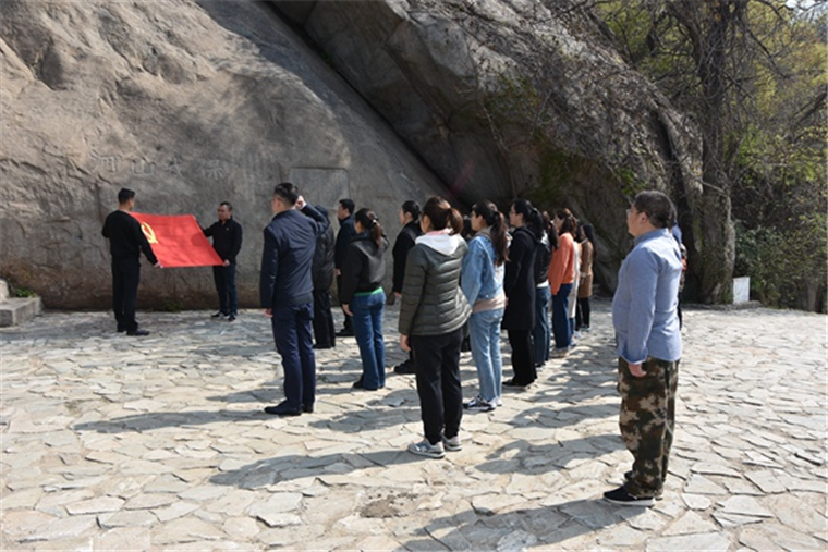 連云區(qū)當(dāng)?shù)攸h員干部在抗日石刻前重溫入黨誓詞。肖迪攝