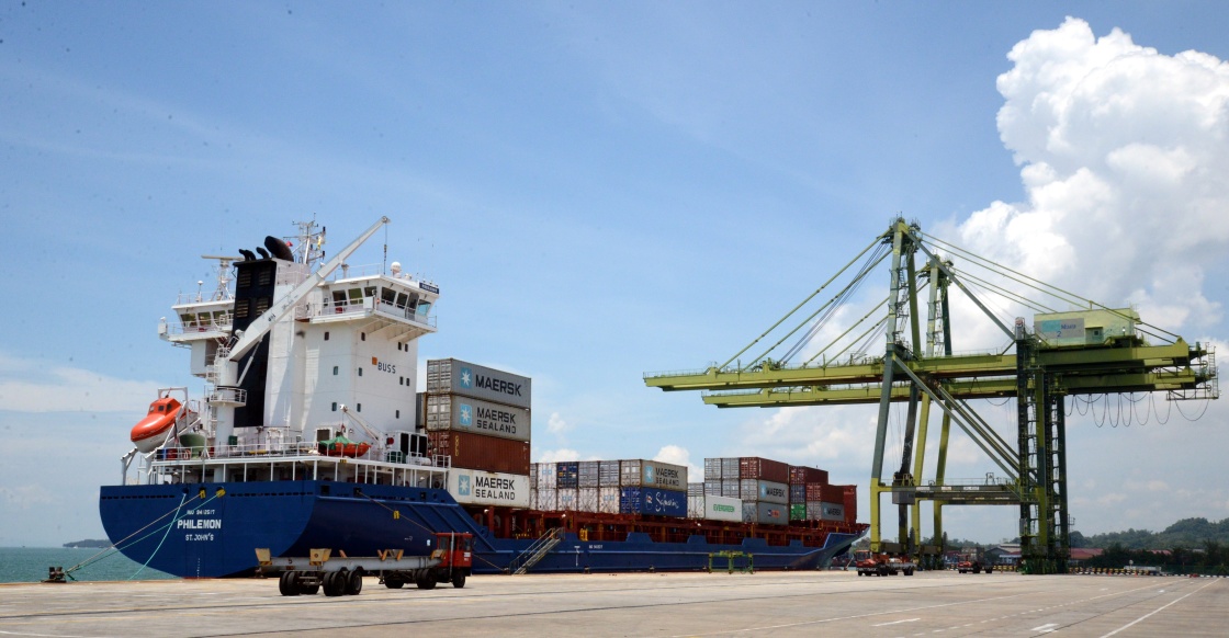 這是2015年4月17日拍攝的距離文萊首都斯里巴加灣29公里的摩拉港集裝箱碼頭。新華社記者鄭捷攝