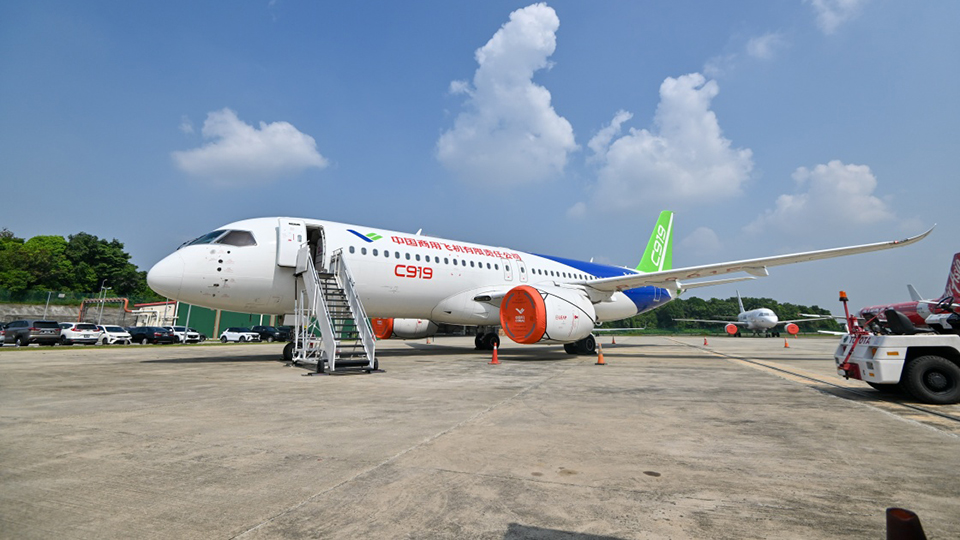 中國(guó)國(guó)產(chǎn)商用飛機(jī)ARJ21和C919亮相馬來(lái)西亞