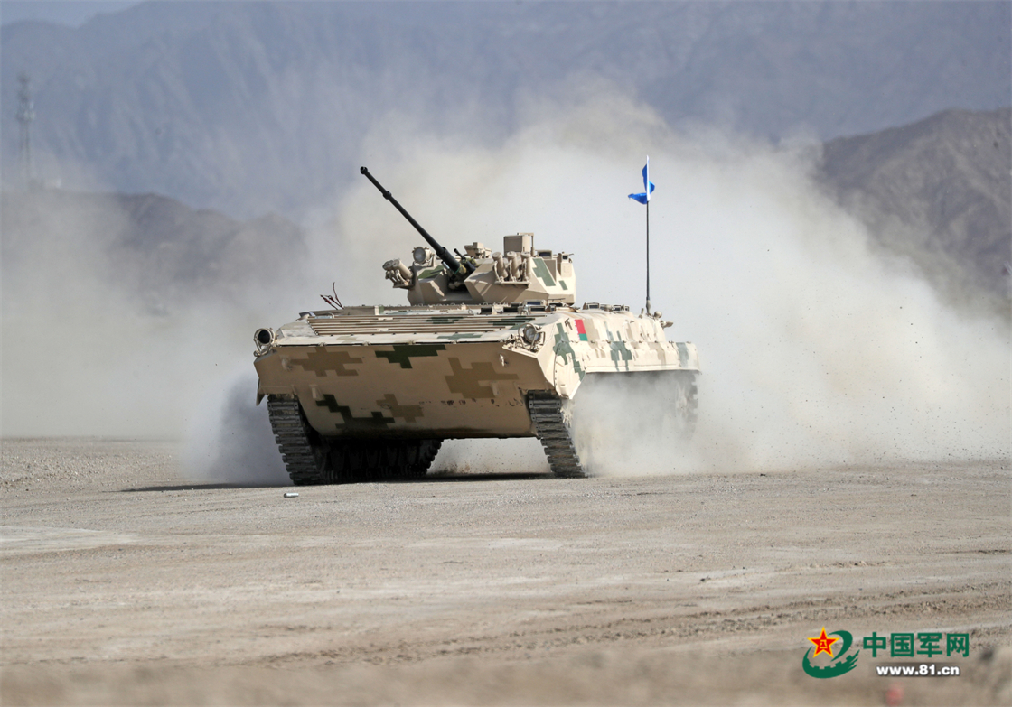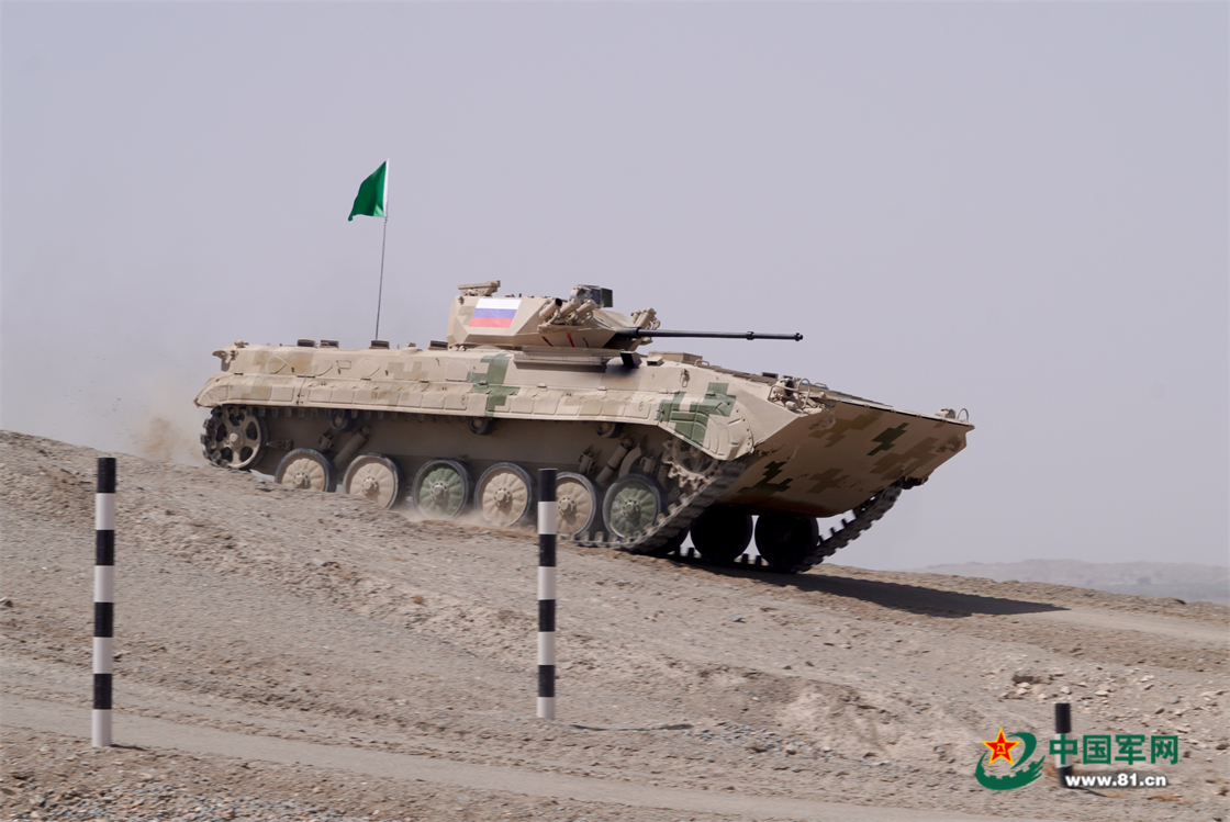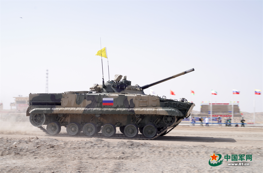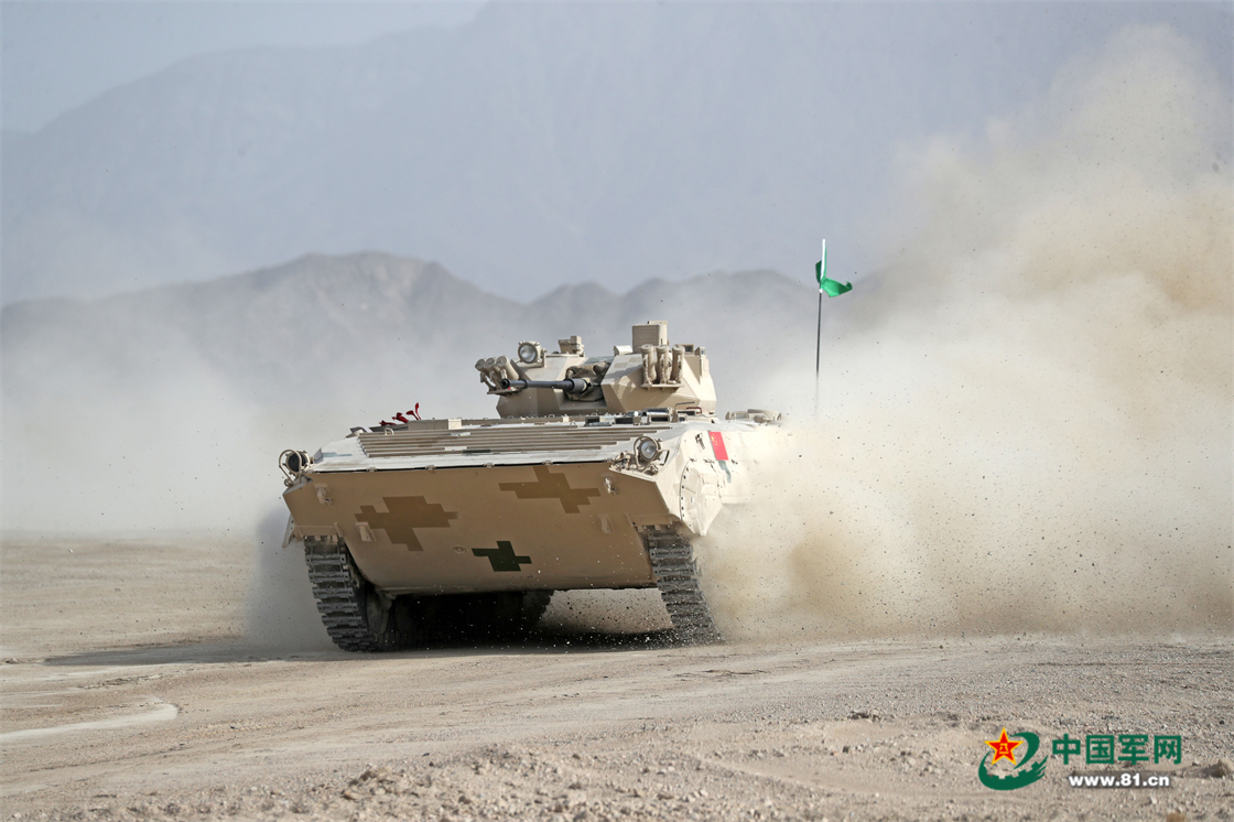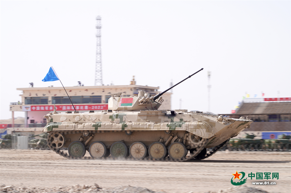 白俄羅斯參賽隊駕駛步戰(zhàn)車疾馳在賽道上。羅興倉 攝