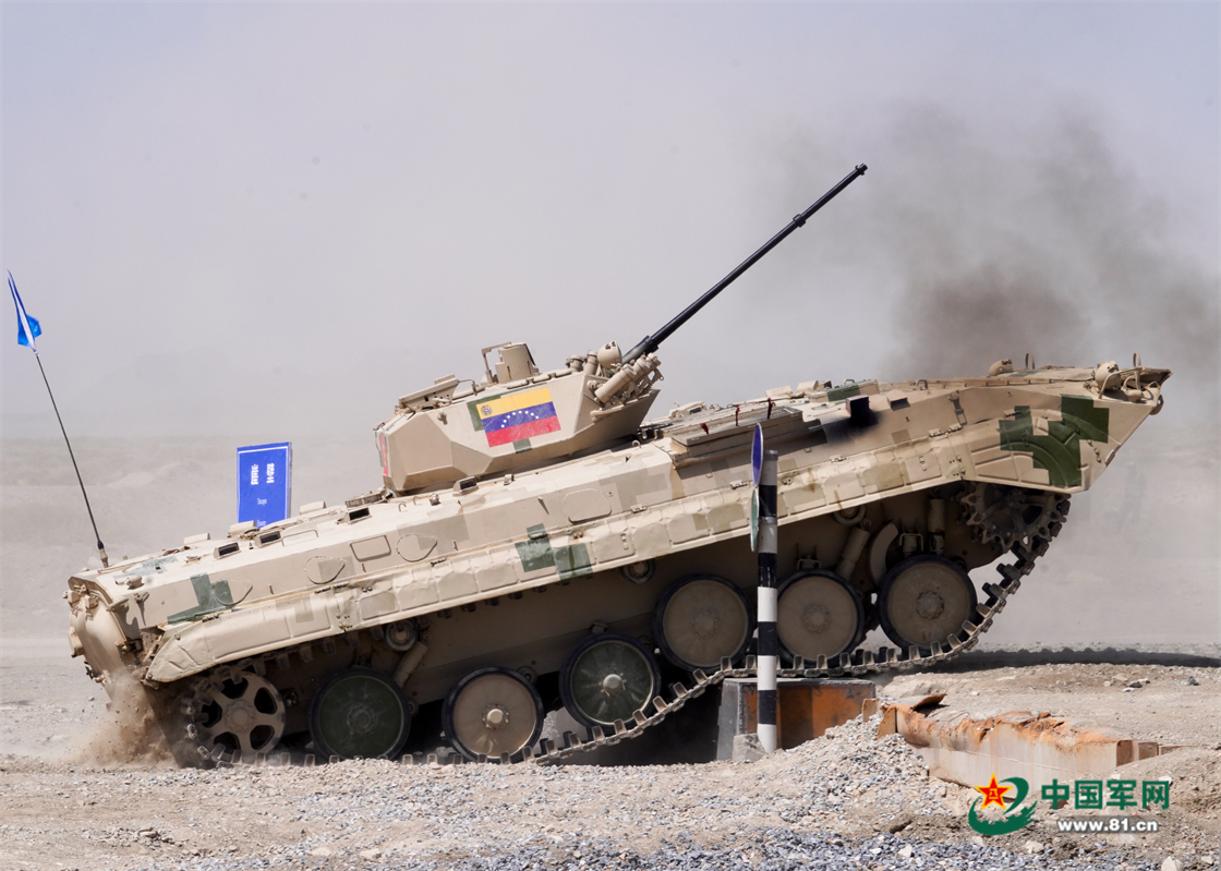 委內(nèi)瑞拉參賽隊員駕駛步戰(zhàn)車通過崖壁障礙。欒鋮 攝