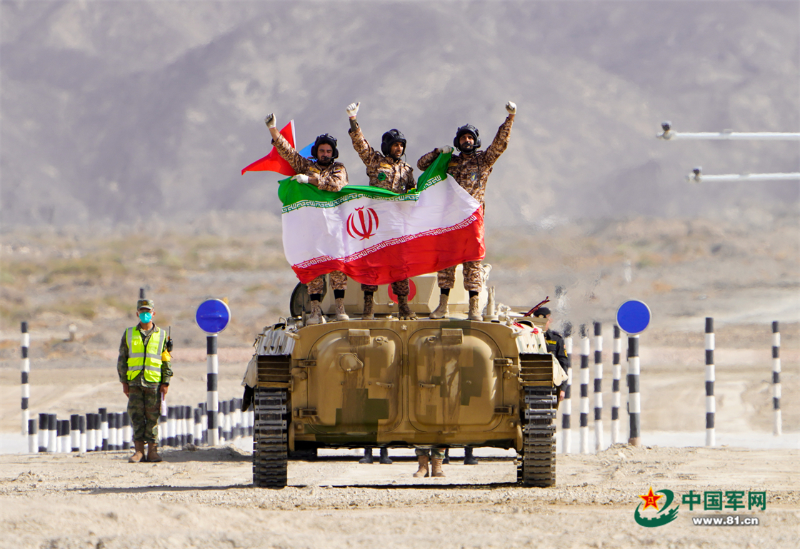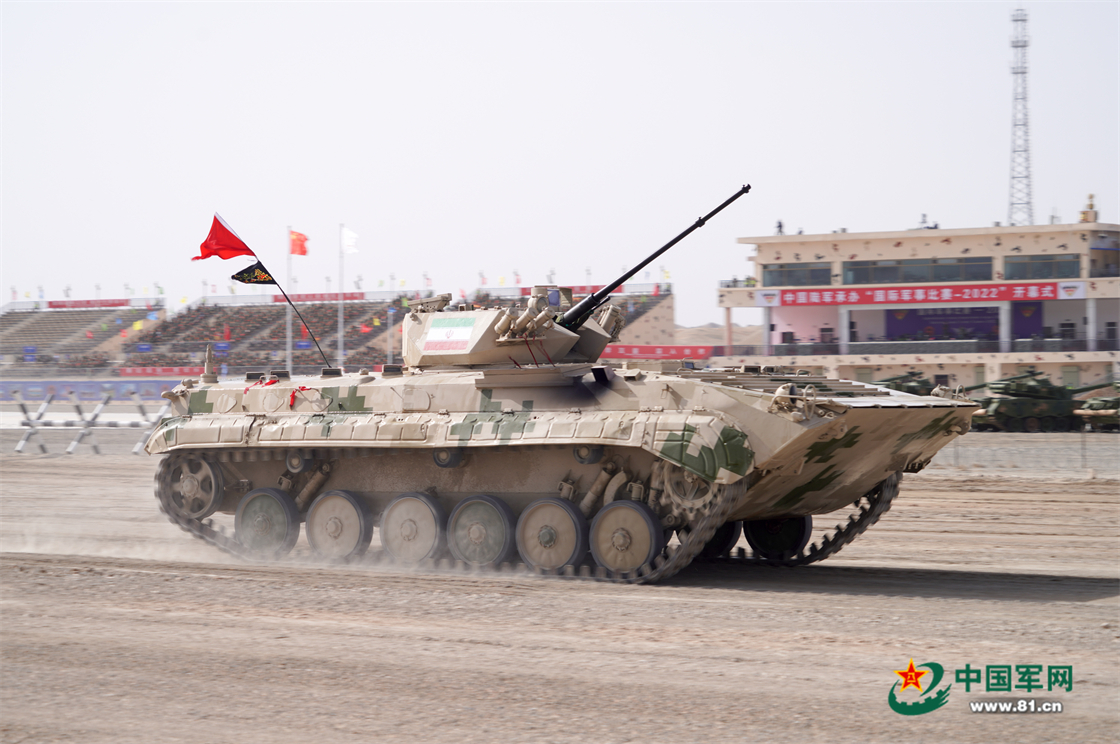 伊朗參賽隊員駕駛步戰(zhàn)車通過觀禮臺。張廣東 攝