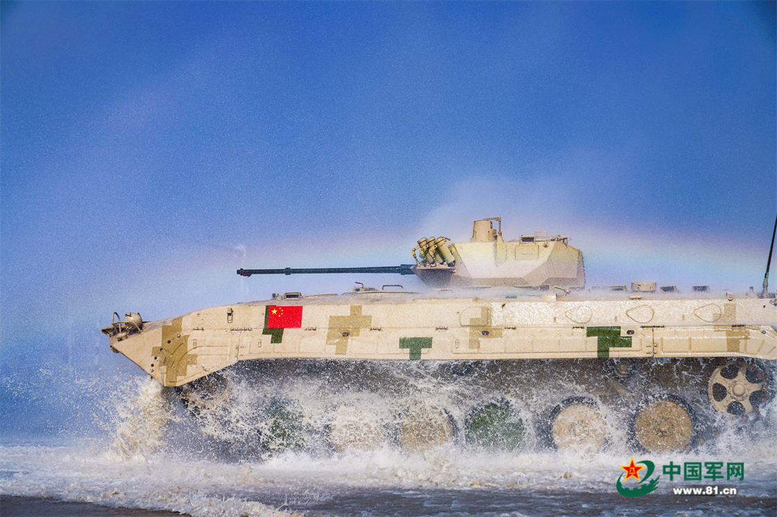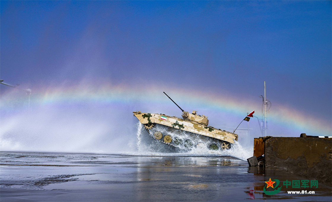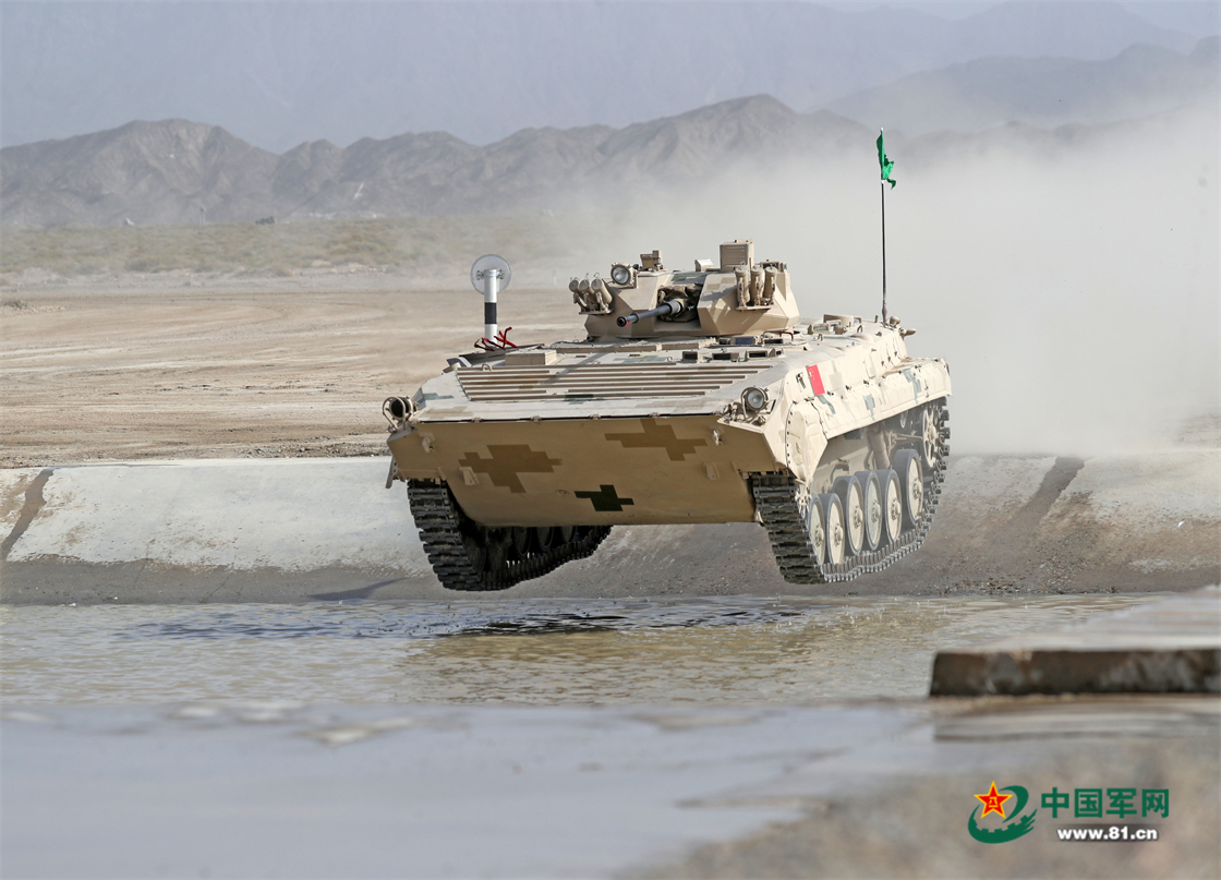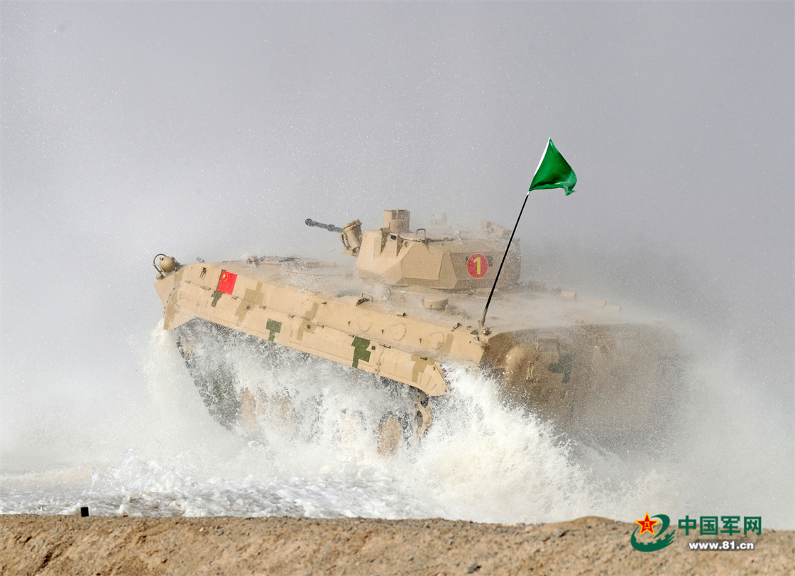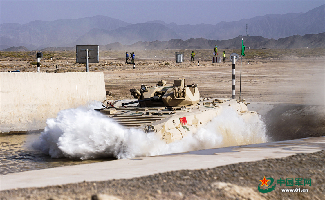 中國參賽隊員駕駛步戰(zhàn)車通過涉水場。李碩勛 攝