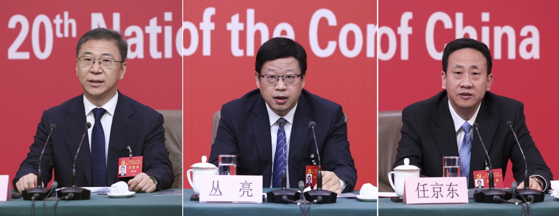 10月17日,中國共產(chǎn)黨第二十次全國代表大會新聞中心舉行記者招待會,請國家發(fā)展和改革委員會黨組成員、副主任趙辰昕,國家發(fā)展和改革委員會黨組成員、國家糧食和物資儲備局黨組書記、局長叢亮,國家能源局黨組成員、副局長任京東介紹貫徹新發(fā)展理念、構(gòu)建新發(fā)展格局、推動高質(zhì)量發(fā)展,以中國式現(xiàn)代化全面推進中華民族偉大復興有關情況,并回答記者提問(拼版照片)。