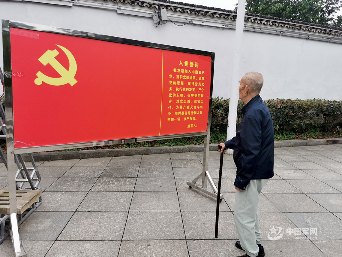 趙永豐在陳賡故居重溫入黨誓詞。(受訪者家屬供圖)