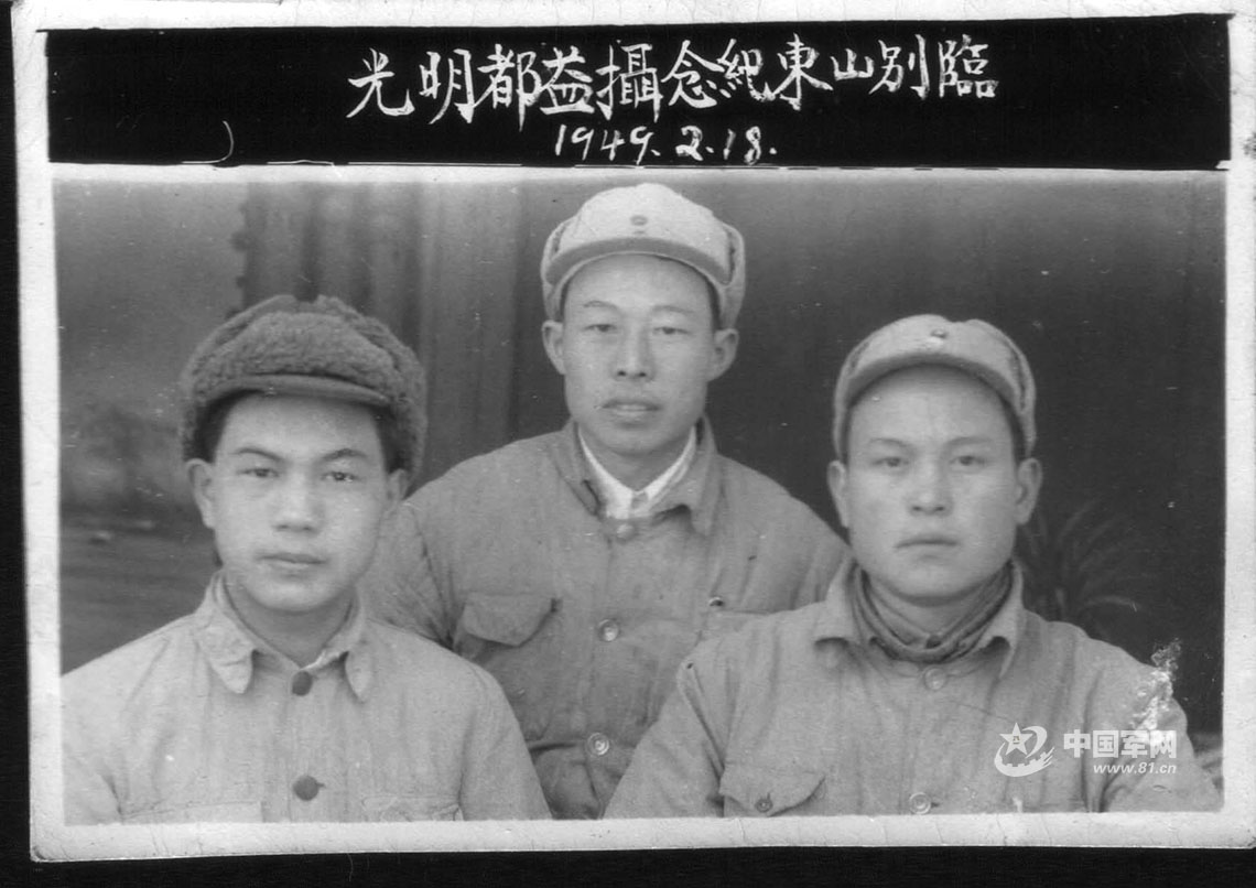 馮國樑(左一)和戰(zhàn)友臨別山東留念,攝于1949年2月18日。(受訪者供圖)