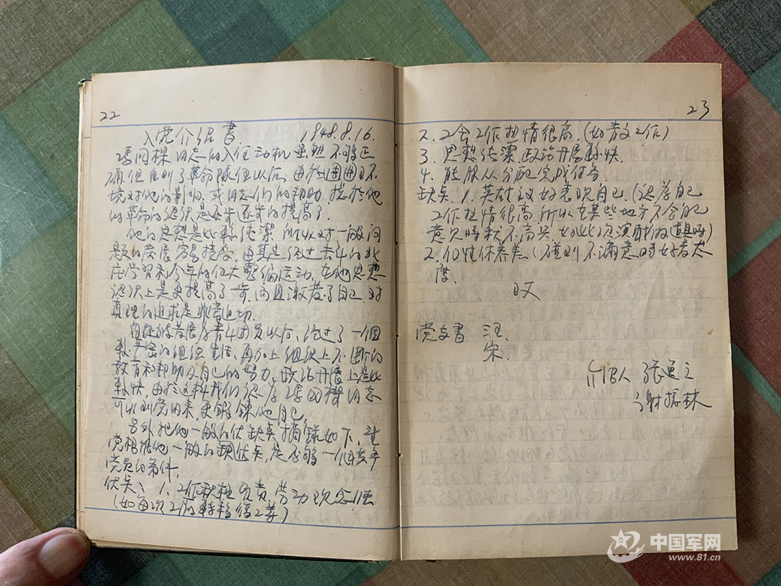 馮國樑的入黨介紹書,這是他為了保存資料后來謄寫在本上的內(nèi)容。(受訪者供圖)