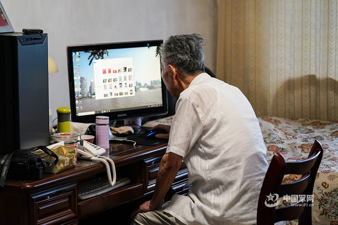 雖已94歲,馮國樑還能熟練地用電腦處理照片和剪輯視頻。中國軍網(wǎng)記者 伍行健 攝