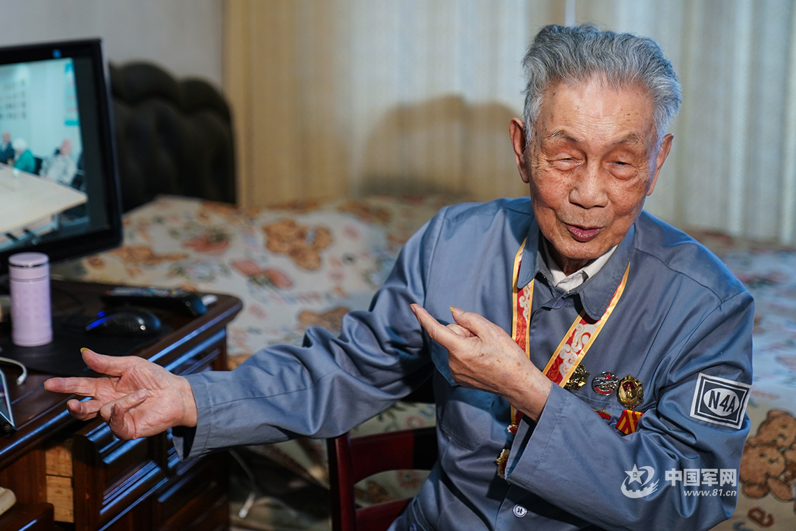 接受中國軍網(wǎng)記者采訪時(shí),馮國樑講述自己參軍的經(jīng)歷。中國軍網(wǎng)記者 伍行健 攝