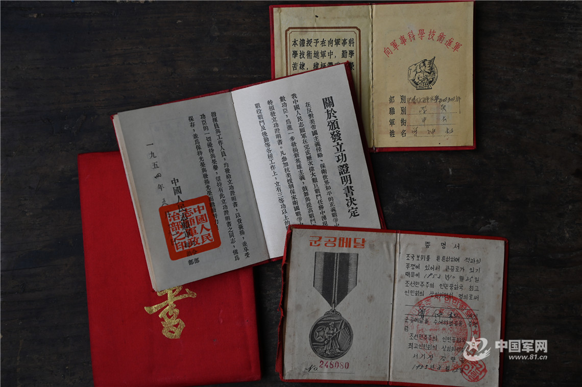 在曾仲和的臥室里,幾個(gè)破舊的大木箱和一張舊書桌很是“搶眼”。女兒曾利華說:“我們幾次想買新的箱子和桌子回來,都被父親嚴(yán)厲制止,因?yàn)檫@些箱子和桌子里放的都是父親從部隊(duì)帶回來的寶貝,輕易不讓人動(dòng)?!迸f書桌里存放的是曾仲和的立功證明書和參加抗美援朝戰(zhàn)爭時(shí)的朝鮮文通行證等“珍貴物品”。