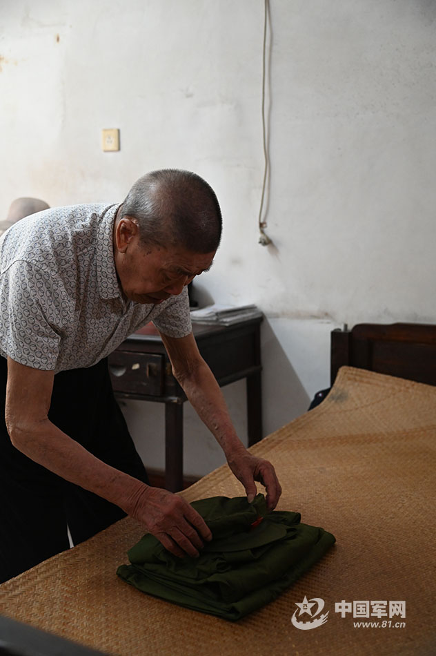 而在一個(gè)舊木箱里,一套解放軍服裝和帽子以及帽徽、領(lǐng)章更是被曾老視如珍寶。他每年都會(huì)把衣服拿出來曬一曬,50多年了,軍裝和軍帽保存得如同新的一般?!安筷?duì)培養(yǎng)了我,給了我一切,特別是讓我晚年生活幸福無憂,我‘百年’之后,要穿著這身軍裝離開?!?/p>