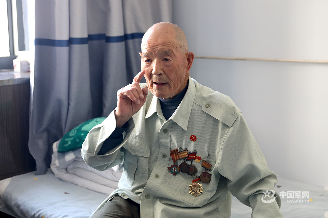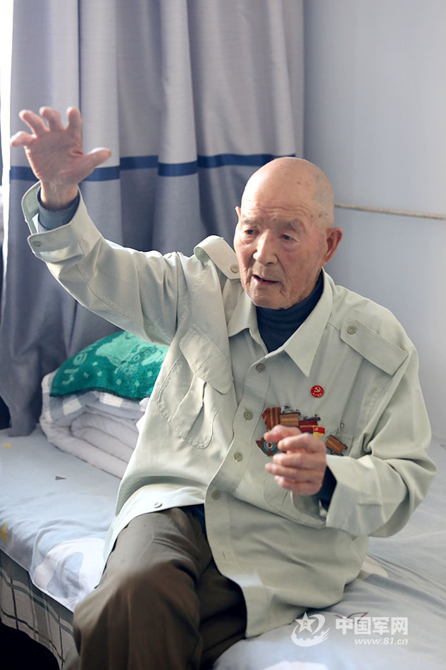 康鳳岐回憶參加新保安戰(zhàn)役時(shí)候的情景。中國(guó)軍網(wǎng)記者 張智程 攝