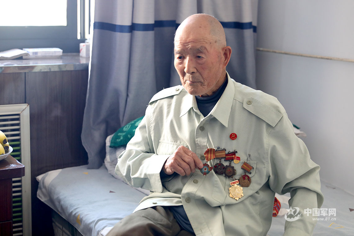 解放東北紀(jì)念章、華北解放紀(jì)念章、解放西北紀(jì)念章、抗美援朝紀(jì)念章……記者面前的這位老人穿著一身平整的舊軍裝,胸前掛滿(mǎn)的各種紀(jì)念章很難讓人移開(kāi)視線(xiàn)。