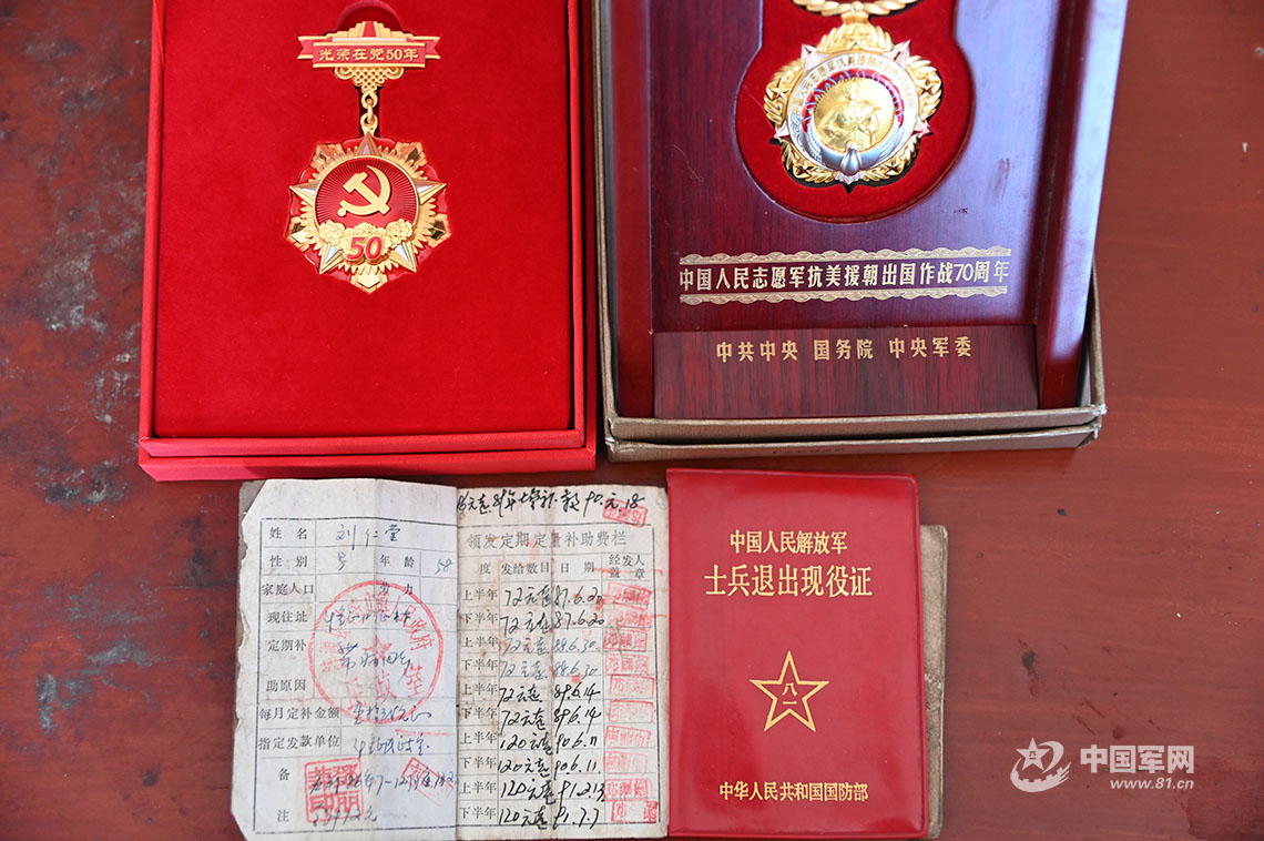 劉仁堂獲得的紀(jì)念章和士兵退出現(xiàn)役證。