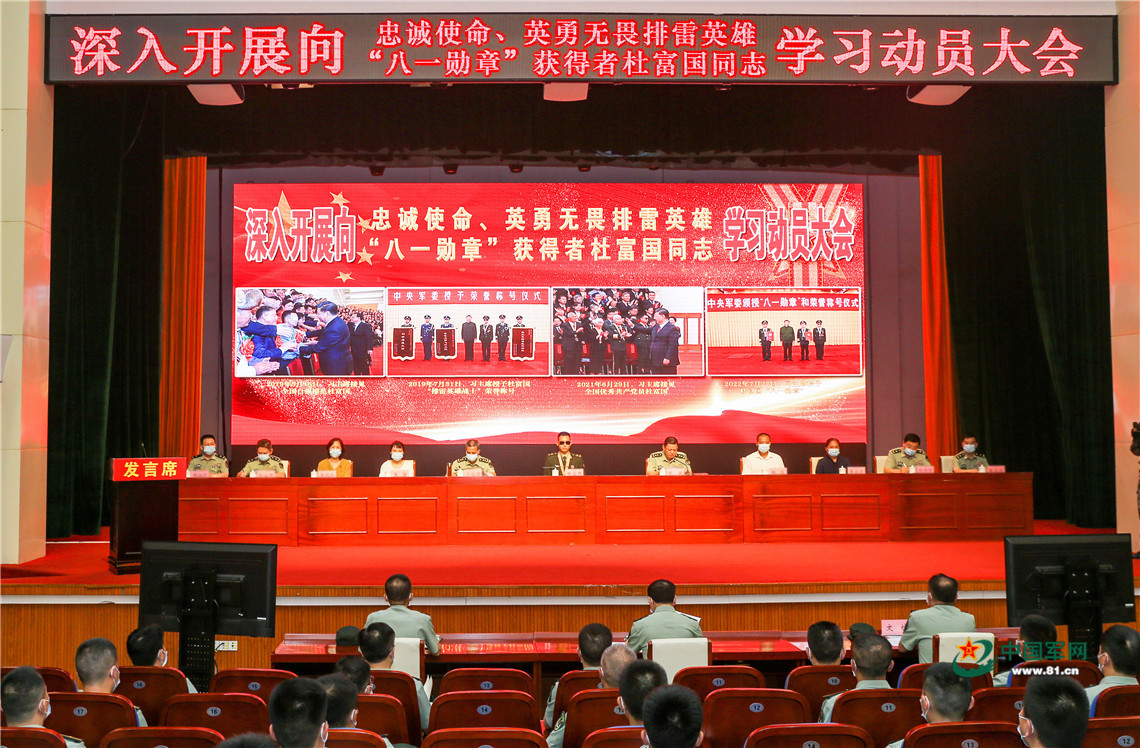 8月8日,南部戰(zhàn)區(qū)陸軍召開向忠誠使命、英勇無畏的排雷英雄,“八一勛章”獲得者杜富國同志學(xué)習(xí)動員大會,在部隊持續(xù)掀起向杜富國同志學(xué)習(xí)熱潮,激勵和感召官兵崇尚榮譽、忠誠使命,積極投入到南部戰(zhàn)區(qū)陸軍戰(zhàn)建備一體推進(jìn)建設(shè)中,以實際行動迎接黨的二十大勝利召開。