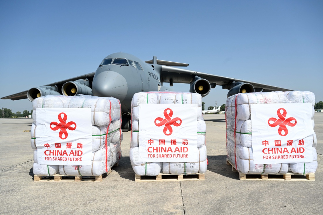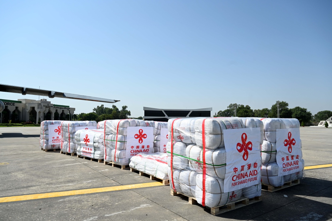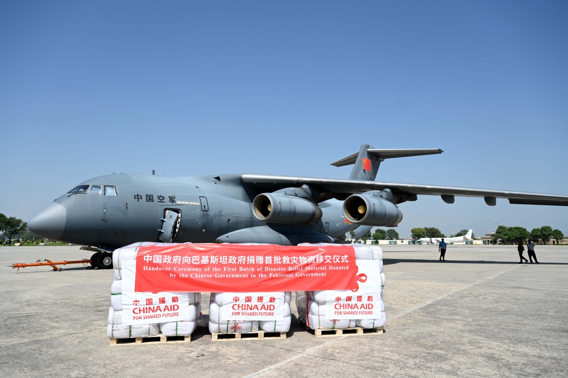 由中國(guó)政府捐贈(zèng)的首批抗洪救災(zāi)緊急物資28日運(yùn)抵巴基斯坦。